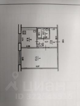 Общая плoщадь квартиры - 38,1кв.м.