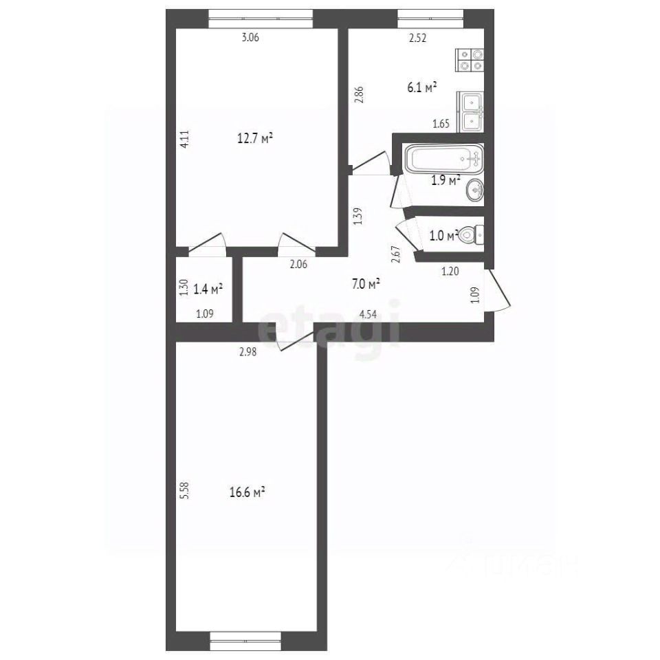 6,1 м²