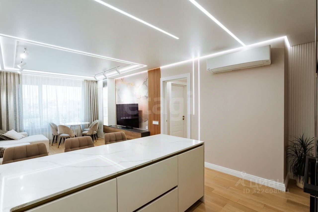 В квартире максимально всё продумано для комфортной жизни всей семьи: удобные зоны хранения, 2 санузла (один с ванной, второй с душевой), кладовая, столешница из натурального камня, паркетный пол, в ванной комнате панно из оникса, прекрасное решение светодиодной подсветки по всей квартире.