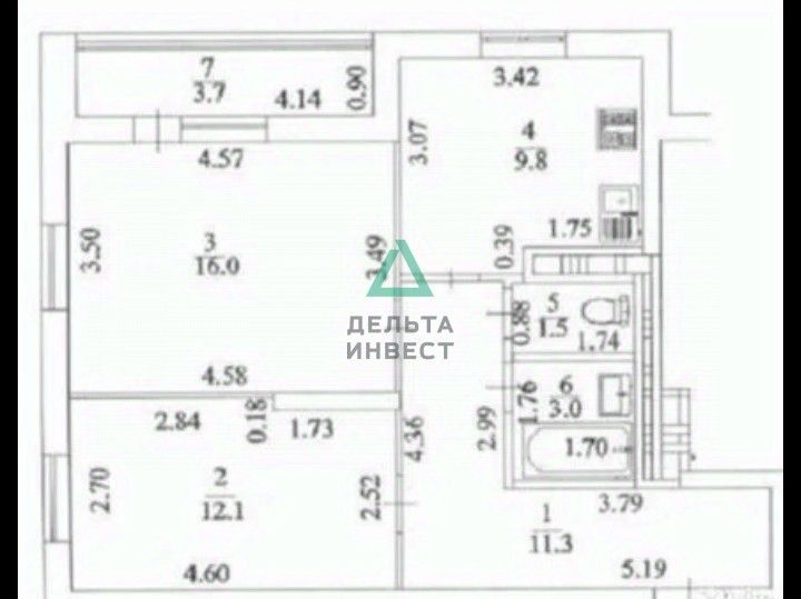 Арт. 119173441 Продается полноценная большая,видовая 2-комнатная квартира площадью 53.7 кв.м в кирпичном доме с видом во двор.