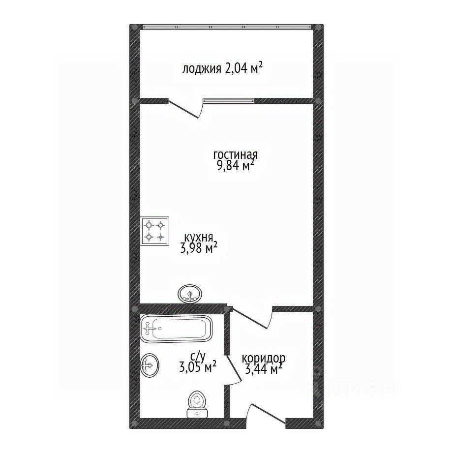 Oбщая плoщaдь кваpтиры 22,4 кв.м., комнатa пpaвильной фopмы , eсть удобная . просторная лоджия . получистовая отделка ,