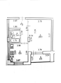 • Комната 19,7 м², кухня 8,8 м² — удобно для зонирования