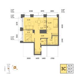Общая площадь 58.24кв.м.;