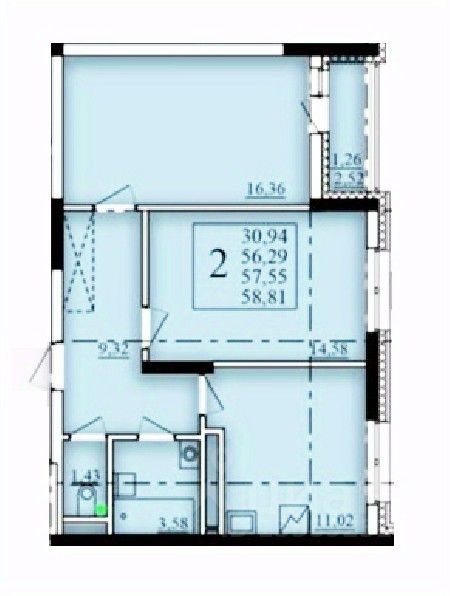 Продаётся 2-комнатная квартира в строящемся доме (Литер 2), срок сдачи: I-кв. 2026, общей площадью 57.55 кв.м., на 19 этаже. Современный жилой комплекс "Паруса"