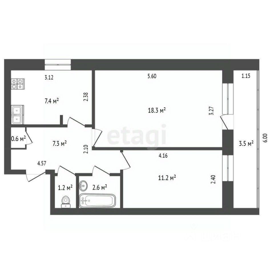 7,4 м²