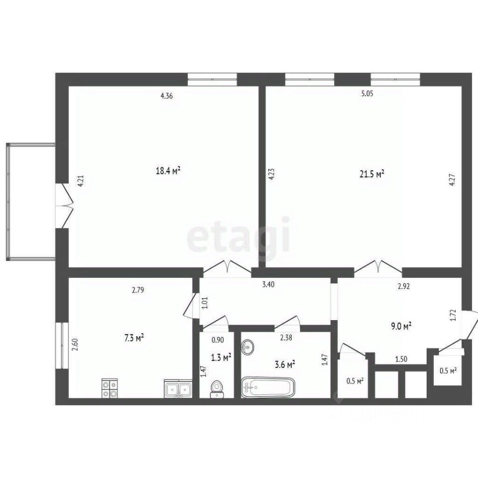 7,3 м²
