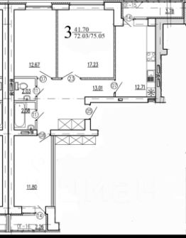 Общая площадь 75,1м2