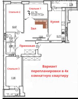 Продаётся трёхкомнатная квартира распашонка по адресу ул. Гази Загитова, д. 9/1, 13 этаж из 14- лучшая планировка из возможных (на фото приложен план перепланировки в четырех комнатную квартиру).