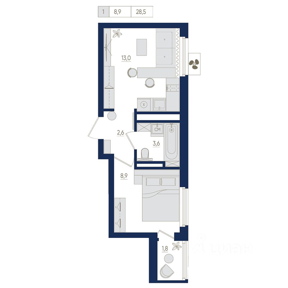 Общая площадь28,5 м²