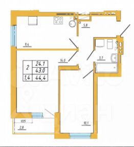 44 м²