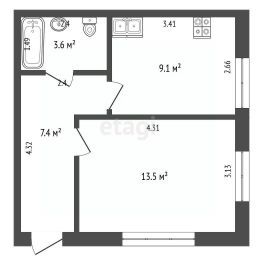 Общая площадь - 33,6 кв.м.