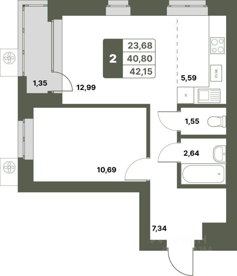 42,15 м²
