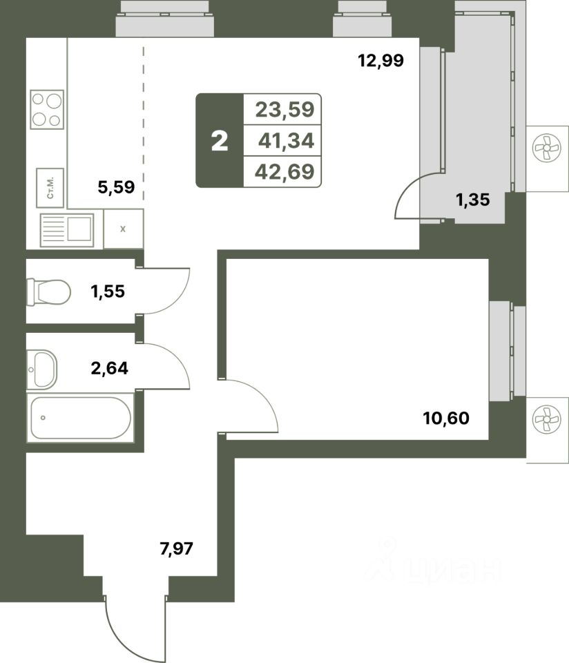 42,69 м²