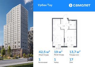 Строим кварталы для жизни с заботой о будущем. Предлагается 1-комнатная квартира комфорт-класса 42,48 кв.м в корпусе 1 на 17 этаже, в ЖК "Урбан Тау"