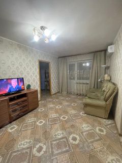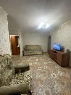 Квартира с косметическим ремонтом :обои светлых тонов , потолок выровнен ,на полу ленолеум ,окна ПВХ во всех комнатах .
