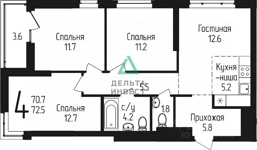 Площадь: 72,5 м²
