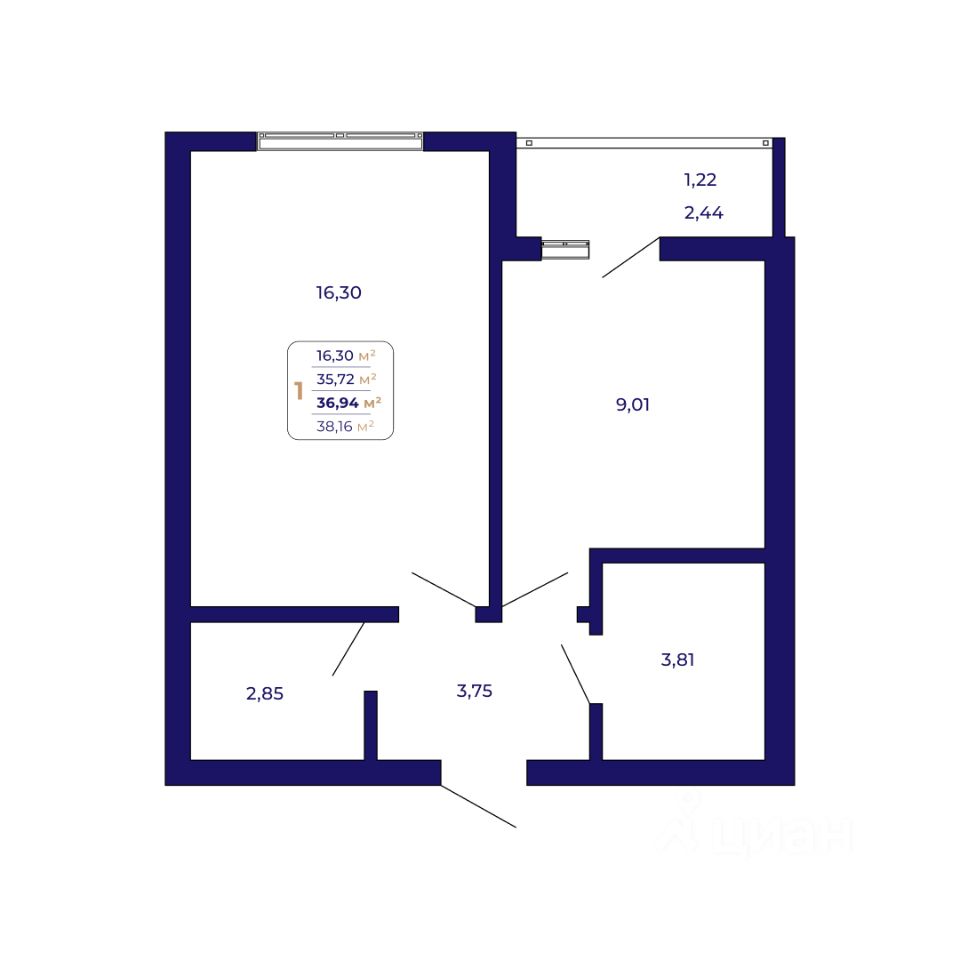 Продаётся 1-комнатная квартира в строящемся доме (Литер 1 (квартал 7)), срок сдачи: IV-кв. 2026, общей площадью 36.94 кв.м., на 8 этаже. Современный жилой комплекс "Паруса"
