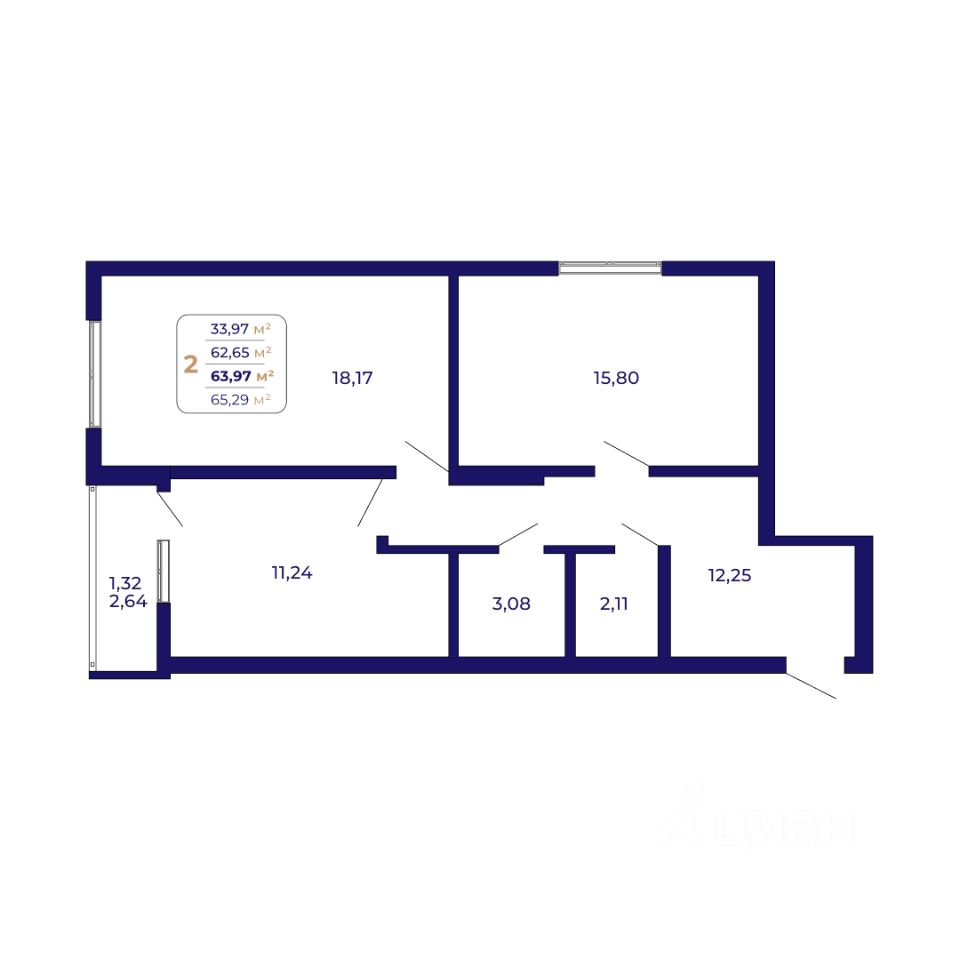 Продаётся 2-комнатная квартира в строящемся доме (Литер 1 (квартал 7)), срок сдачи: IV-кв. 2026, общей площадью 63.97 кв.м., на 21 этаже. Современный жилой комплекс "Паруса"