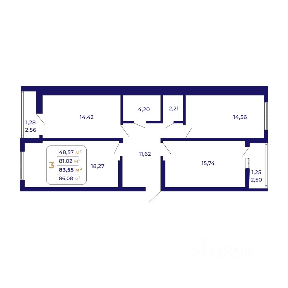 Продаётся 3-комнатная квартира в строящемся доме (Литер 1 (квартал 7)), срок сдачи: IV-кв. 2026, общей площадью 83.55 кв.м., на 2 этаже. Современный жилой комплекс "Паруса"