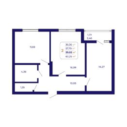 Продаётся 2-комнатная квартира в строящемся доме (Литер 1 (квартал 7)), срок сдачи: IV-кв. 2026, общей площадью 59.02 кв.м., на 9 этаже. Современный жилой комплекс "Паруса"