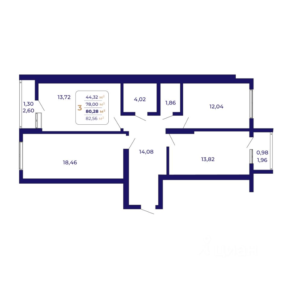 Продаётся 3-комнатная квартира в строящемся доме (Литер 1 (квартал 7)), срок сдачи: IV-кв. 2026, общей площадью 80.28 кв.м., на 13 этаже. Современный жилой комплекс "Паруса"