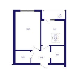 Продаётся 1-комнатная квартира в строящемся доме (Литер 1 (квартал 7)), срок сдачи: IV-кв. 2026, общей площадью 36.67 кв.м., на 2 этаже. Современный жилой комплекс "Паруса"