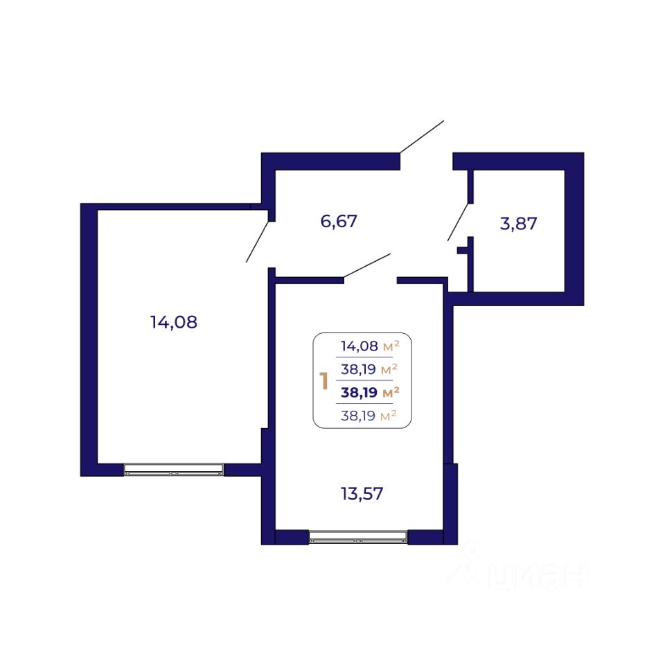 Продаётся 1-комнатная квартира в строящемся доме (Литер 1 (квартал 7)), срок сдачи: IV-кв. 2026, общей площадью 38.19 кв.м., на 1 этаже. Современный жилой комплекс "Паруса"