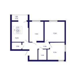 Продаётся 3-комнатная квартира в строящемся доме (Литер 1 (квартал 7)), срок сдачи: IV-кв. 2026, общей площадью 72.69 кв.м., на 17 этаже. Современный жилой комплекс "Паруса"