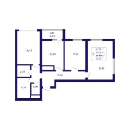 Продаётся 3-комнатная квартира в строящемся доме (Литер 3 ), срок сдачи: II-кв. 2026, общей площадью 74.69 кв.м., на 12 этаже. Современный жилой комплекс "Паруса"