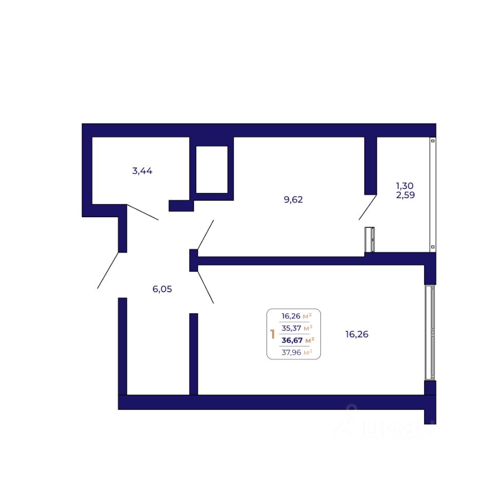 Продаётся 1-комнатная квартира в строящемся доме (Литер 2), срок сдачи: I-кв. 2026, общей площадью 36.67 кв.м., на 18 этаже. Современный жилой комплекс "Паруса"