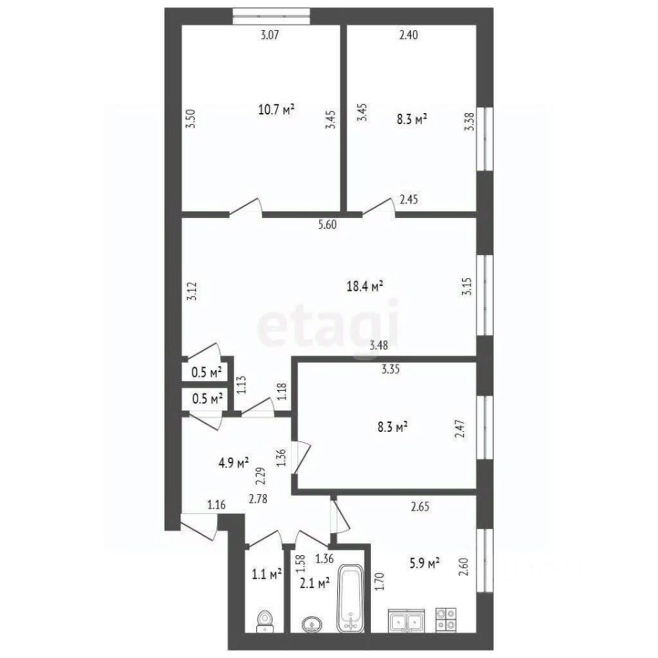 Кухня - 5,9 кв.м, достаточно просторная.
