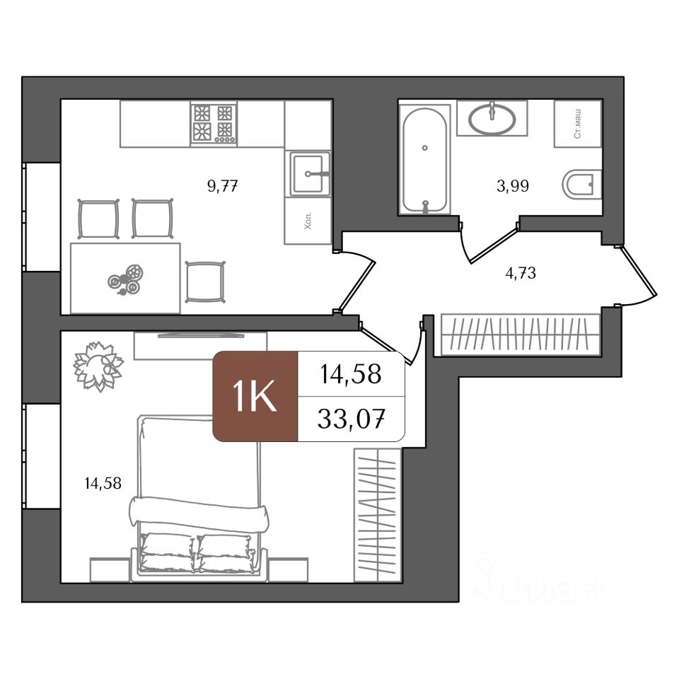 33,07 м²