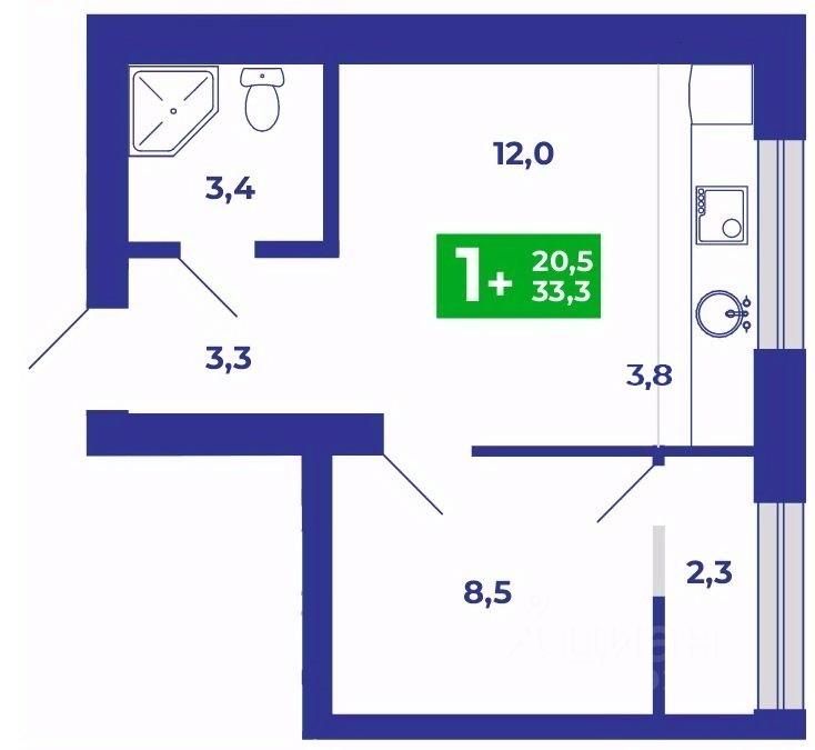 Компактная евро-однокомнатная квартира площадью 33,3 кв.м., в которой есть всё необходимое для жизни одного или двоих человек. Светлая кухня-гостиная площадью 15,5 кв.м., в которой воплотились смелые мечты о кухонном гарнитуре перед большим окном, сквозь который проникает много солнечных лучей. Спальня 8,5 кв.мм. с теплой лоджией 2,3 кв.м., которую можно присоединить к площади спальни после ввода дома в эксплуатацию, либо оставить рабочее место, кабинет или место хранения.Совмещенный санузел 3,4 кв.м.