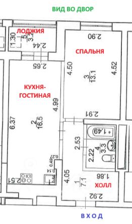 Общая площадь квартиры (вкл. лоджию) - 43,2 кв. м
