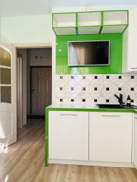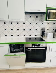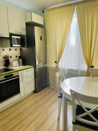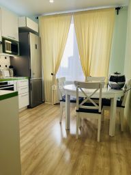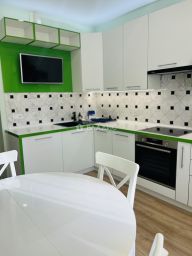 Встроенная кухня с духовым шкафом, вытяжкой, микроволновкой и индукционной варочной поверхностью. Имеется электрический чайник и полноценный большой холодильник, стиральная машина, посудомоечная машина, телевизор плазма на кухне. Встроенный шкаф к прихожей. Плазму из зала собственник забирает.