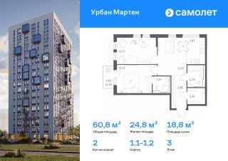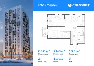 Строим кварталы для жизни с заботой о будущем. Предлагается 2-комнатная квартира комфорт-класса 60,76 кв.м в корпусе 1.1-1.2 на 3 этаже, в ЖК "Урбан Мартен"