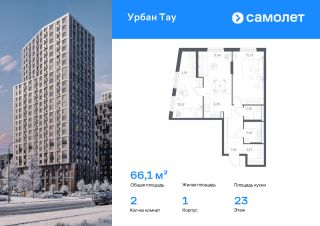 Строим кварталы для жизни с заботой о будущем. Предлагается 2-комнатная квартира комфорт-класса 66,08 кв.м в корпусе 1 на 23 этаже, в ЖК "Урбан Тау"
