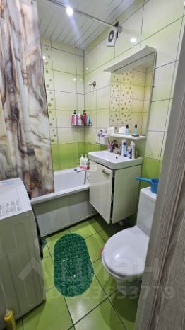 Санузел: Совмещенный санузел в плитке, установлена сантехника.