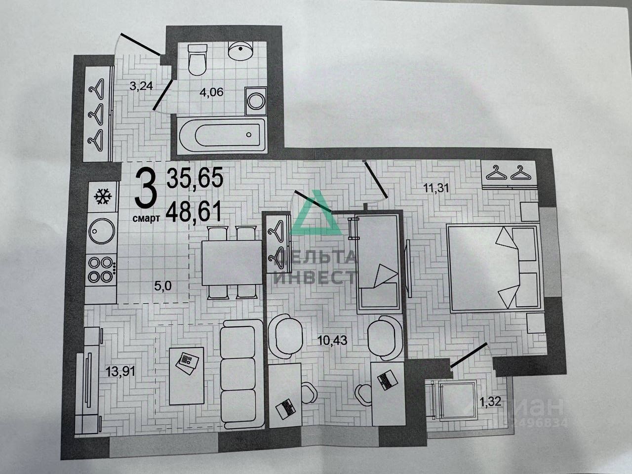 Общая площадь 48,61 м2.