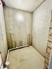 Получистовая отделка whitеbох: полусухая стяжка пола, оштукатуренные стены, проложена электропроводка и разводка воды. Окна расширенные - высотой 2 метра! и шириной от 1,6 м до 1,8 м. Лучевая разводка отопления - пол будет теплый.