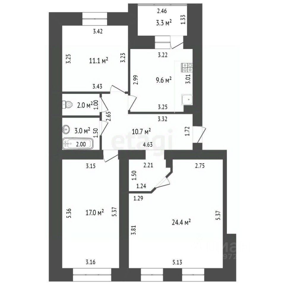 9,6 м²