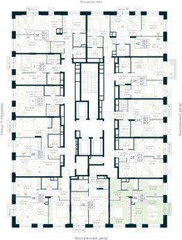 Входные группы оформлены элегантно и продуманно. Акцентные элементы, ландшафтные композиции и представительская зона в стиле эко-лофт создают эффект "портала" в приватный мир комплекса.