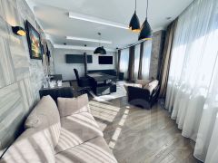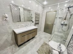 В квартире выполнен дизайнерский ремонт с использованием европейских материалов. Выполнена шумоизоляция по стенам с соседями. Заменены полностью окна в квартире на качественные с двойным стеклопакетом, подоконники из искусственного камня. Установлена мощная автоматическая приточная вентиляция Shuft (Дания), которая подает, очищает и нагревает воздух, удаляя отработанный воздух естественным путем. В санузлах произведена замена стояковых труб.