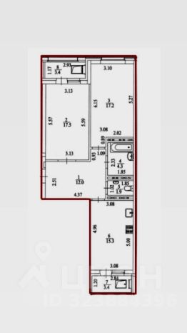 Общая площадь - 71.6 кв.м. (с учетом лоджий - 75 кв.м.), жилая - 34.41 кв.м. (комнаты по 17.2 кв.м.), кухня - 15.55 кв.м., ванная - 4.37 кв.м., туалет - 1.99 кв.м., прихожая - 12.79 кв.м., 2 лоджии по - 3.4 кв.м