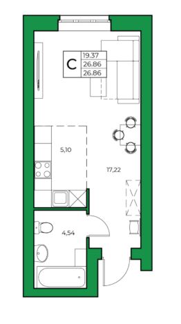 Продается 1-к квартира 26.86 кв. м.:
