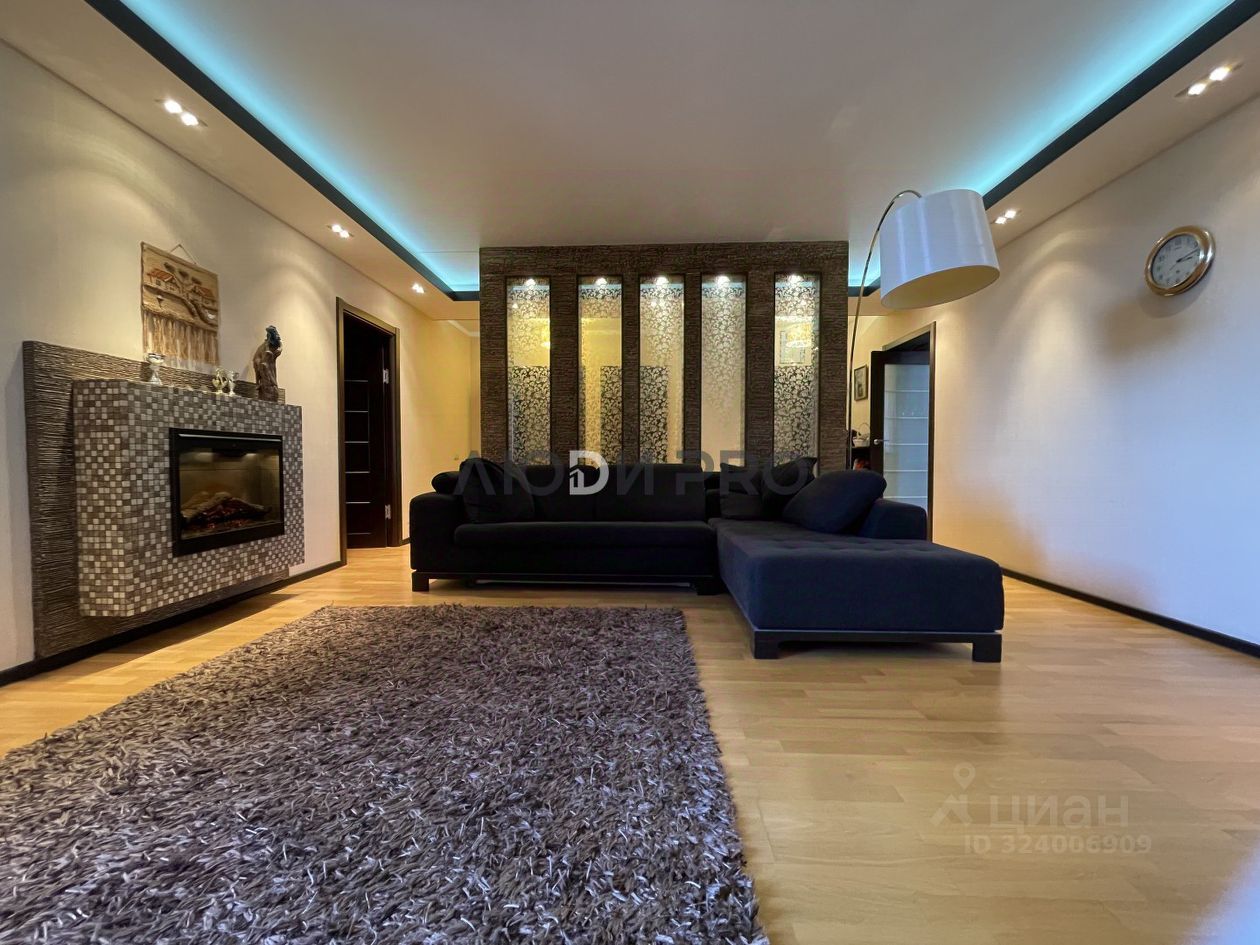 У квартиры идеальная планировка. Просторный холл с гардеробной, большая кухня с выходом на лоджию, уютная гостиная с электрокамином, родительская спальня с гардеробной и панорамным остеклением (вид на сквер им В.В. Маяковского), 2 детские комнаты, 2 санузла (один из них с гидромассажной ванной).