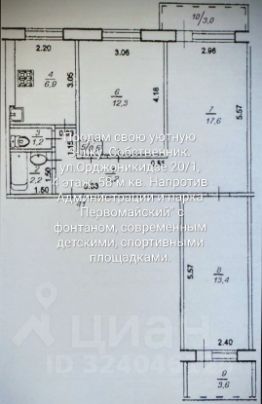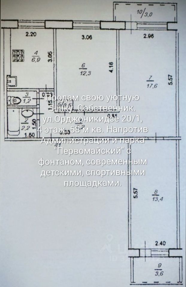 Квартира расположена на 4 этаже 9-этажного панельного дома. Общая площадь составляет 58 кв. м. Три комнаты: две изолированные (14 кв. м и 19 кв. м), одна смежная (12 кв. м) - идеально подойдут для семьи.