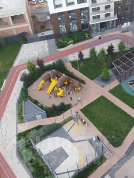 Большая закрытая территория двора, включающая: многоуровневую детскую площадку для разных возрастов, спортивно-оздоровительный тренажёрный комплекс, воркаут-зону и прогулочную зону на свежем воздухе.