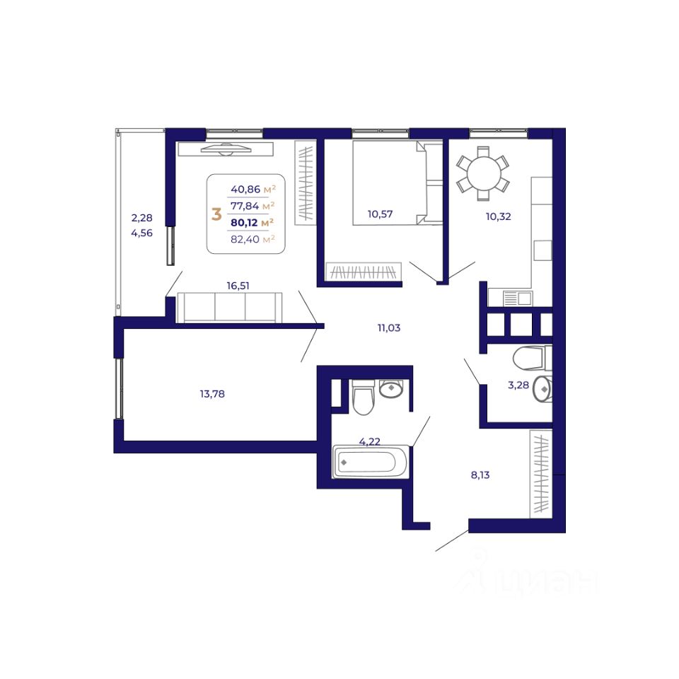 Продаётся 3-комнатная квартира в строящемся доме (Литер 6 (квартал 7)), срок сдачи: IV-кв. 2026, общей площадью 80.12 кв.м., на 15 этаже. Современный жилой комплекс "Паруса"