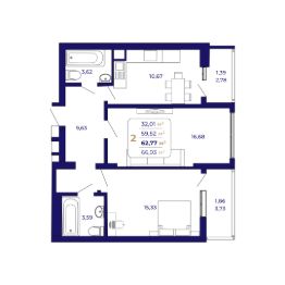 Продаётся 2-комнатная квартира в строящемся доме (Литер 5 (квартал 7)), срок сдачи: I-кв. 2027, общей площадью 62.77 кв.м., на 13 этаже. Современный жилой комплекс "Паруса"